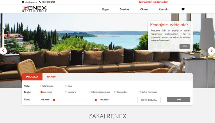 Nova web stranica kompanije za nekretnine Renex.